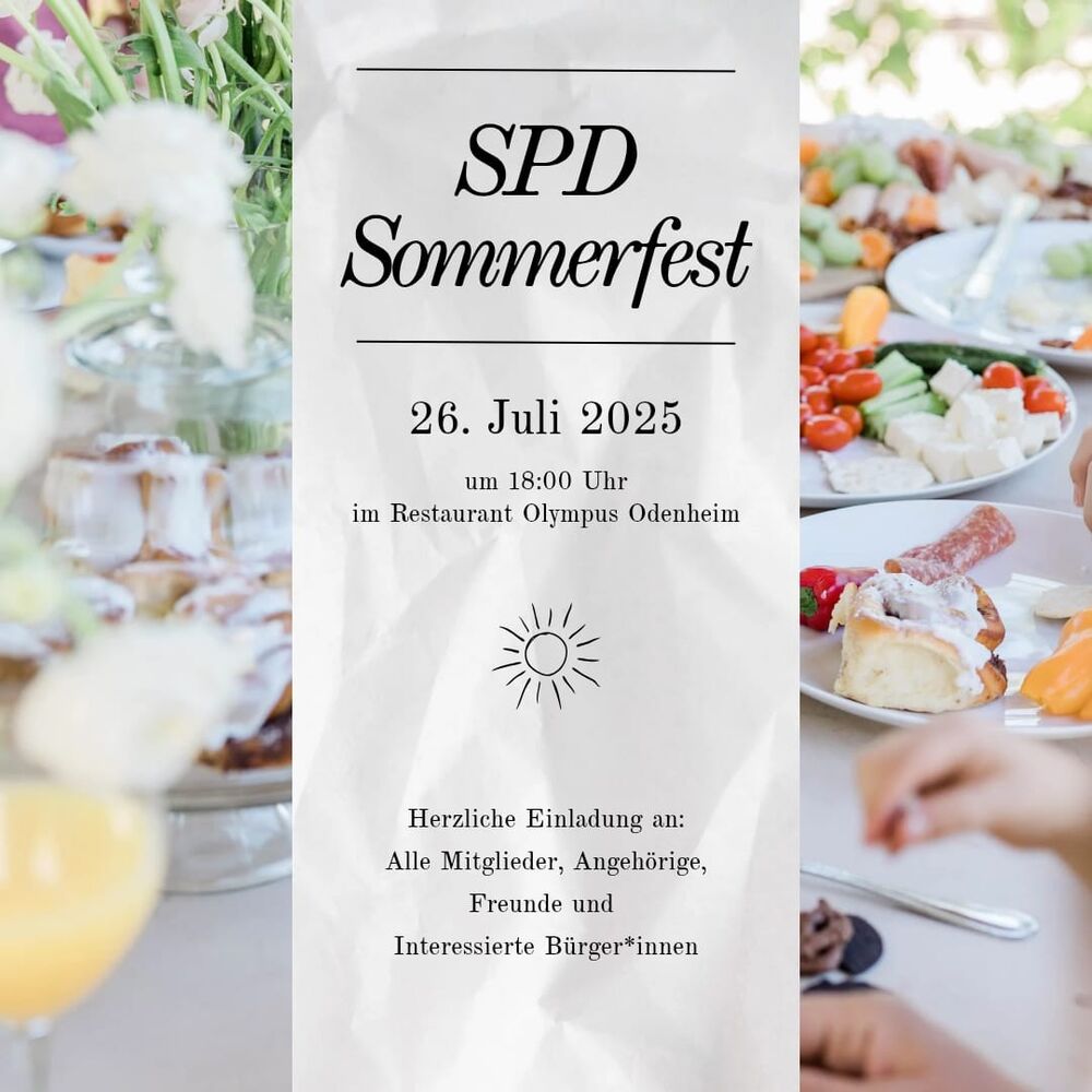 Vor den Ferien laden wir alle Mitglieder, Angehörigen und Freunde herzlich zu unserem Sommertreffen am Samstag den 26. Juli um 18 Uhr im Restaurant Olympos in Odenheim ein. Wir wollen gut essen und trinken und natürlich auch die Gelegenheit nutzen, über politische Themen zu sprechen und zu hören, wo wir auf kommunaler Ebene etwas bewegen können. Interessierte Bürgerinnen und Bürger sind ebenfalls sehr herzlich willkommen und können mit den Gemeinderäten ins Gespräch kommen.